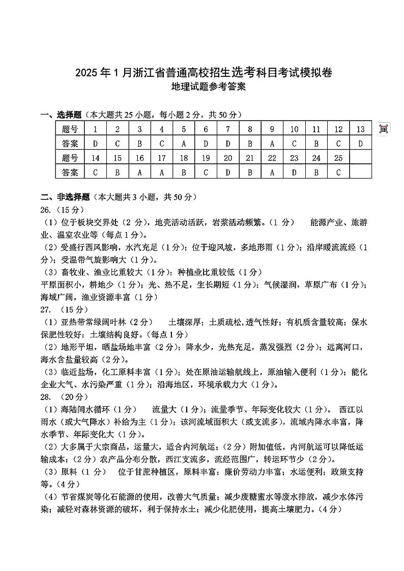 地理答案-2025届浙江省五校联盟高三12月首考模拟.pdf