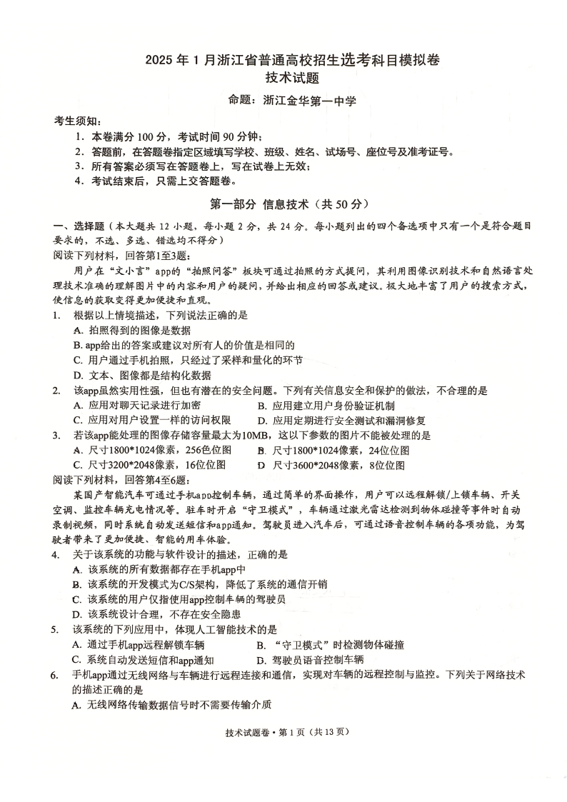 技术试卷-2025届浙江省五校联盟高三12月首考模拟.pdf