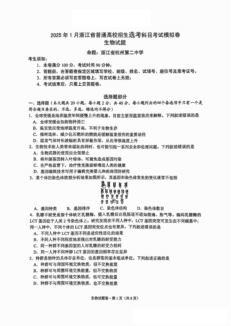 生物试卷-2025届浙江省五校联盟高三12月首考模拟.pdf