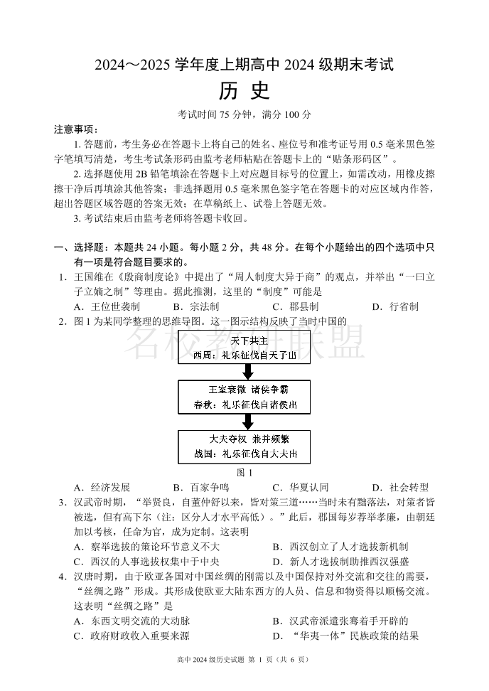 四川省成都市蓉城名校联盟2024-2025学年高一上学期期末考试 历史.pdf