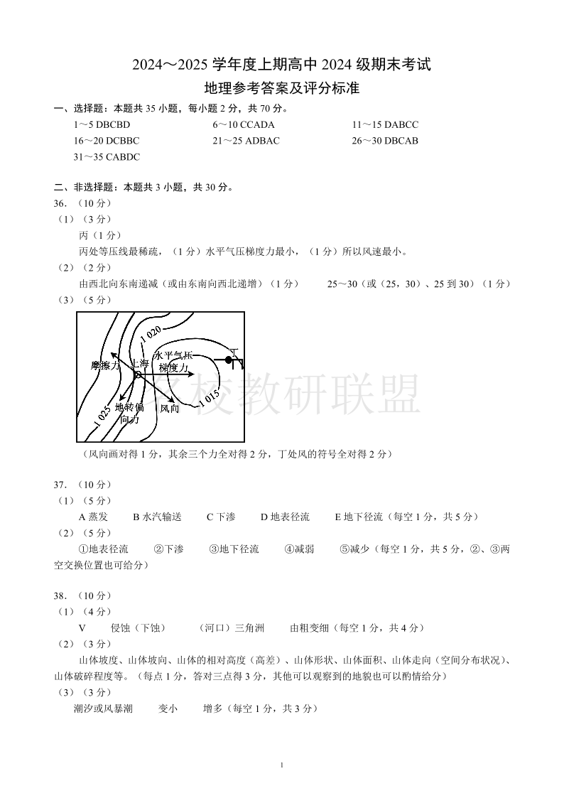 四川省成都市蓉城名校联盟2024-2025学年高一上学期期末考试 地理答案.pdf