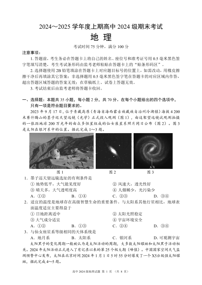 四川省成都市蓉城名校联盟2024-2025学年高一上学期期末考试 地理.pdf