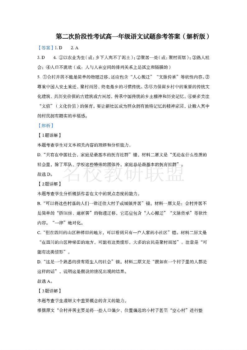 江苏省盐城市五校联考2024-2025学年高一上学期12月月考 语文答案.pdf