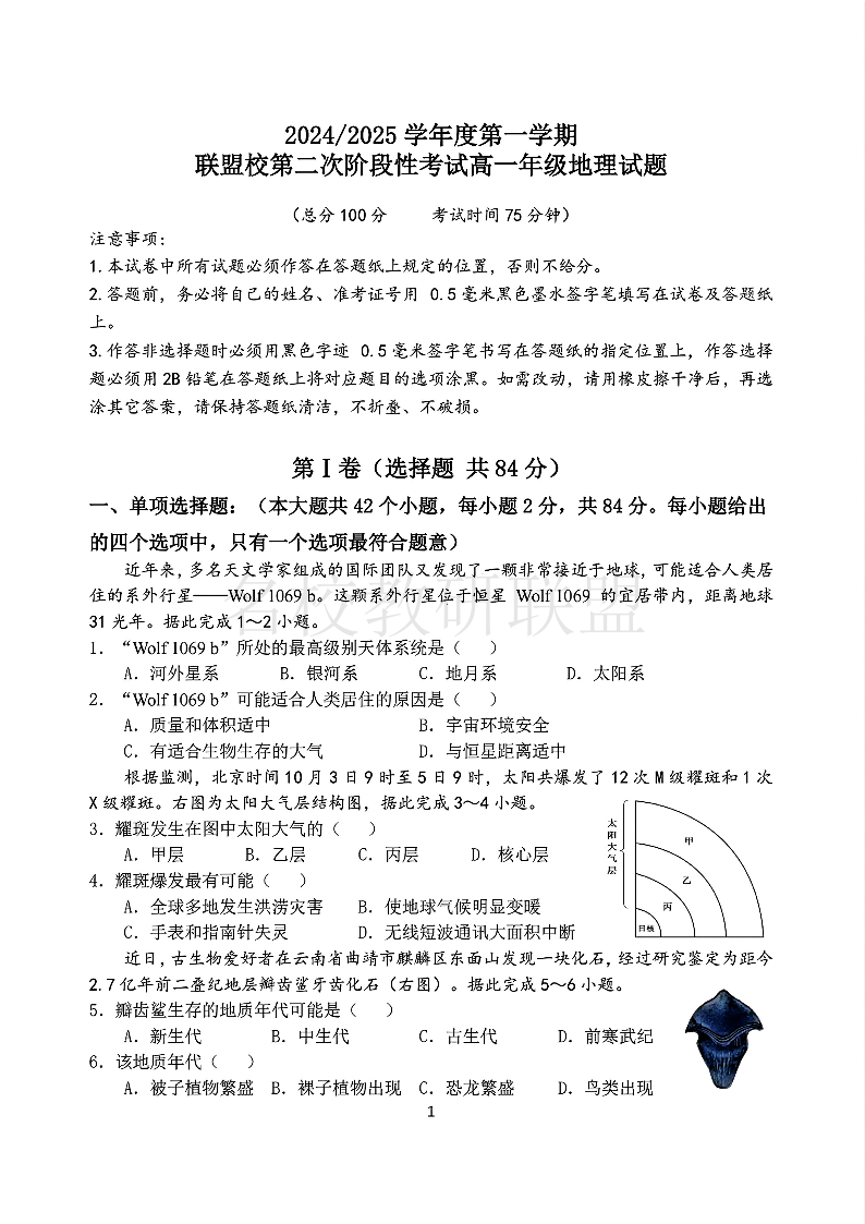 江苏省盐城市五校联考2024-2025学年高一上学期12月月考 地理.pdf