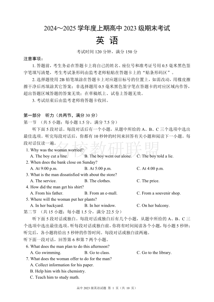 四川省成都市蓉城名校联盟2024-2025学年高二上学期期末考试 英语.pdf
