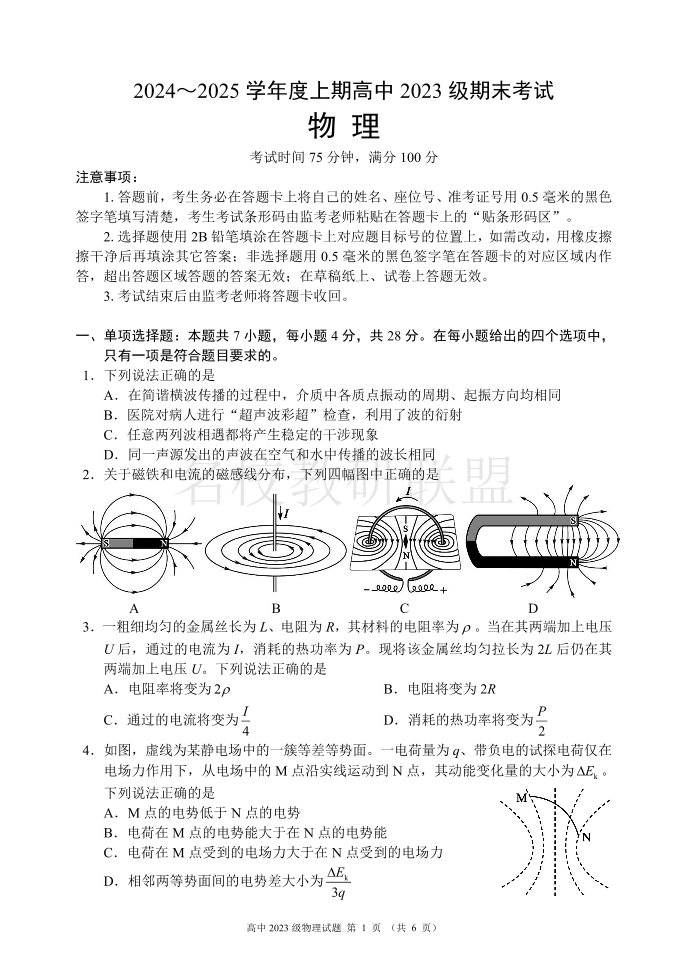 四川省成都市蓉城名校联盟2024-2025学年高二上学期期末考试 物理.pdf
