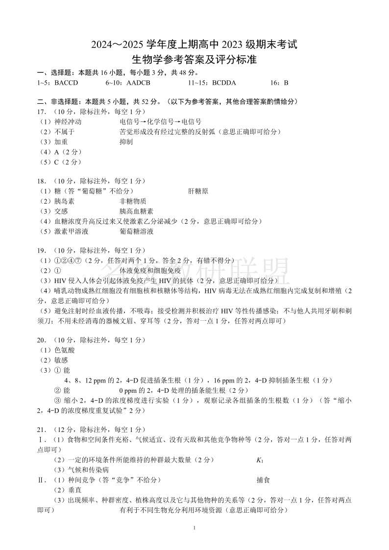 四川省成都市蓉城名校联盟2024-2025学年高二上学期期末考试 生物答案.pdf