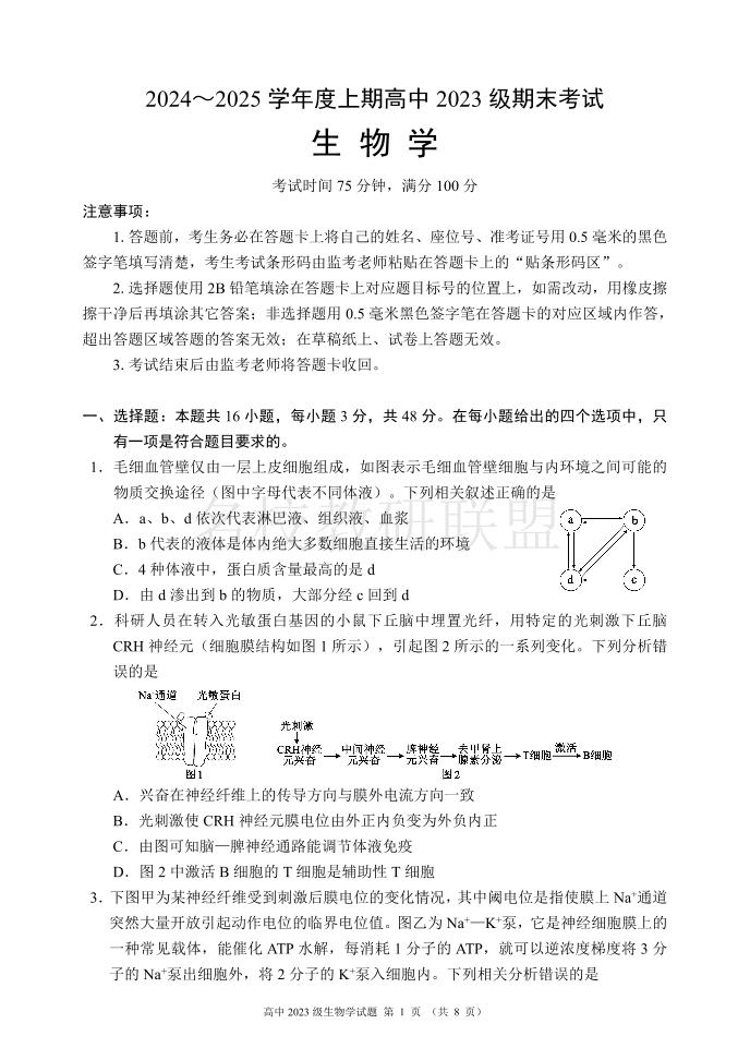 四川省成都市蓉城名校联盟2024-2025学年高二上学期期末考试 生物.pdf