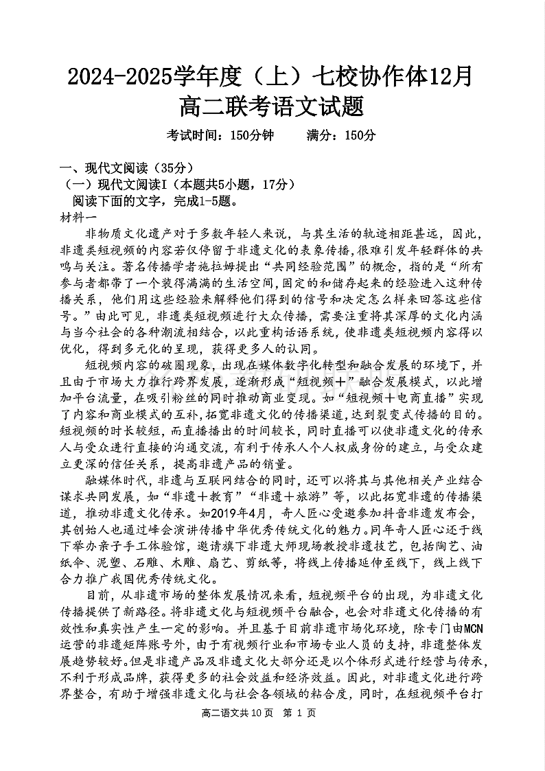 辽宁省七校协作体2024-2025学年高二上学期12月月考 语文.pdf