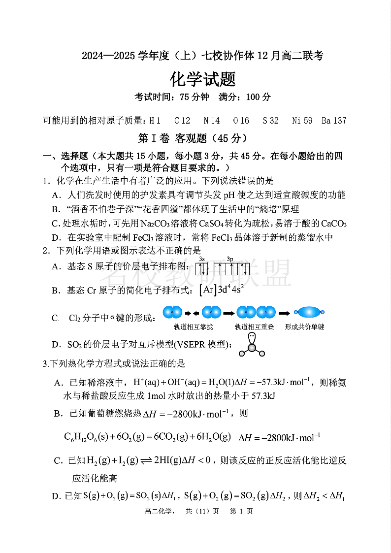 辽宁省七校协作体2024-2025学年高二上学期12月月考 化学.pdf