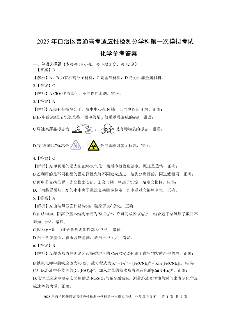 化学答案 2025自治区分学科第一次模拟考试.pdf
