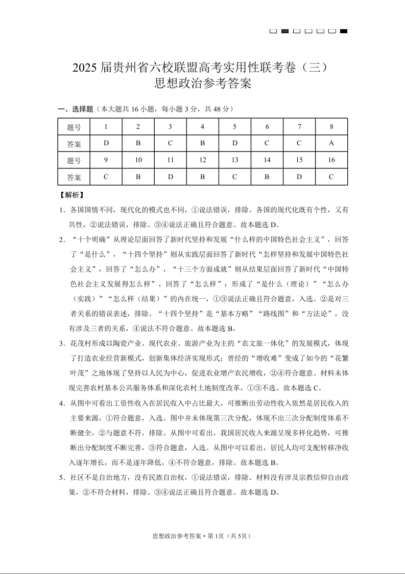 2025届贵州省六校联盟高考实用性联考卷(三)政治答案.docx