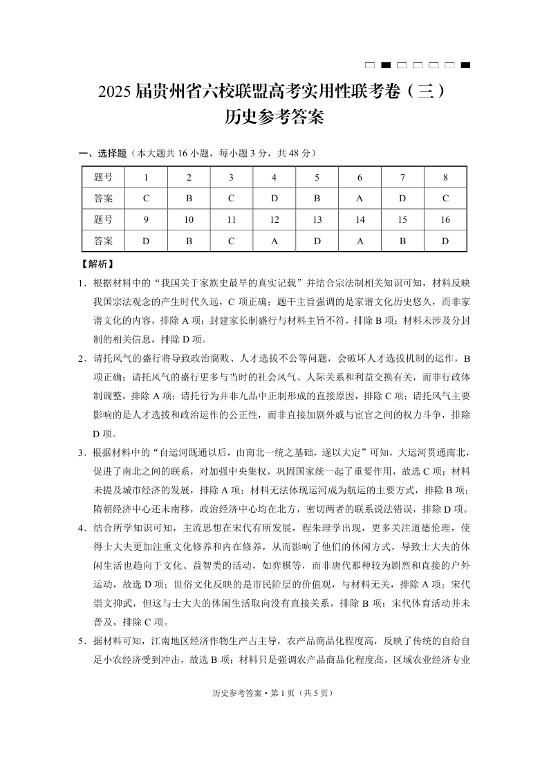 2025届贵州省六校联盟高考实用性联考卷(三)历史答案.pdf