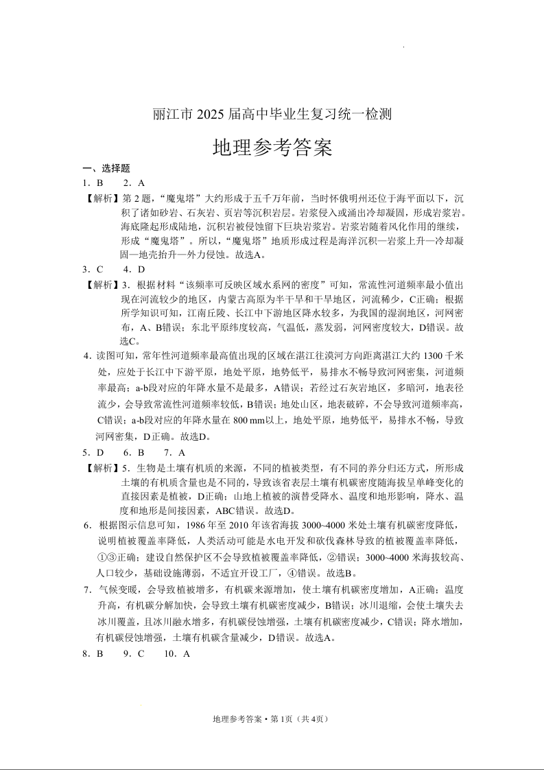 云南省丽江市2024-2025学年高中毕业生复习统一检测(12月)地理答案.docx
