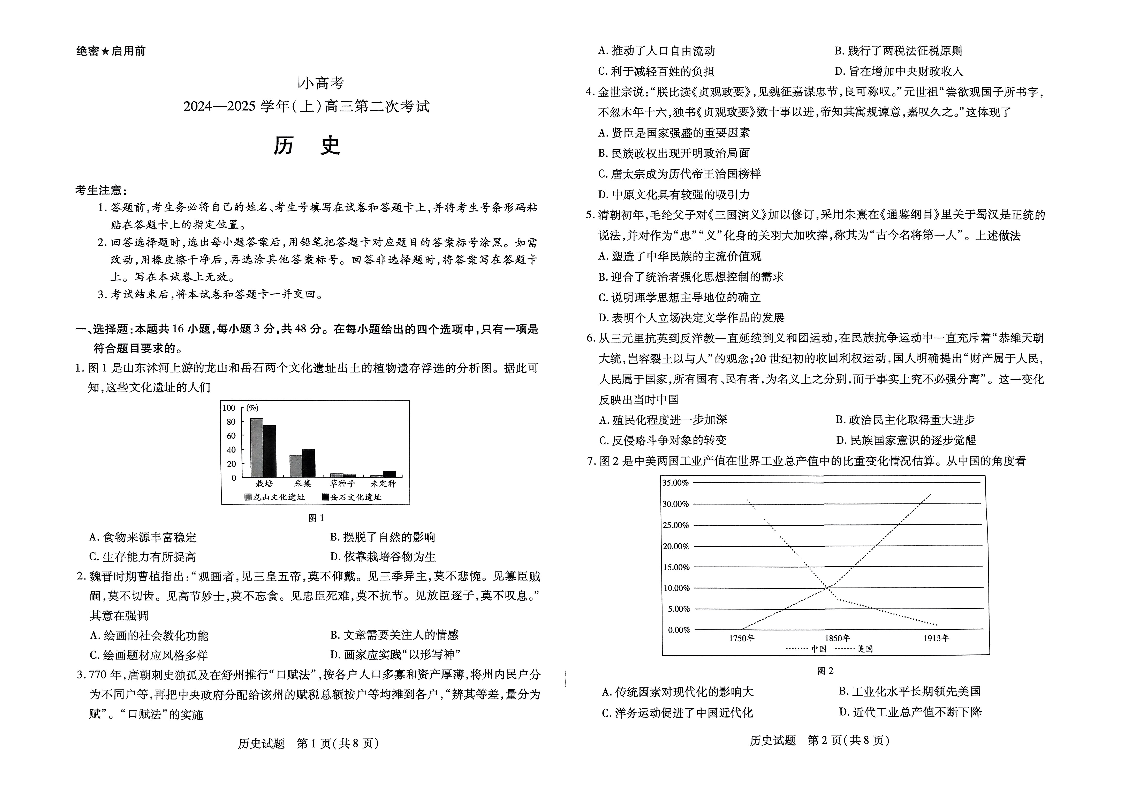 河南省天一大联考小高考2024-2025学年(上)高三第二次考试 历史.pdf