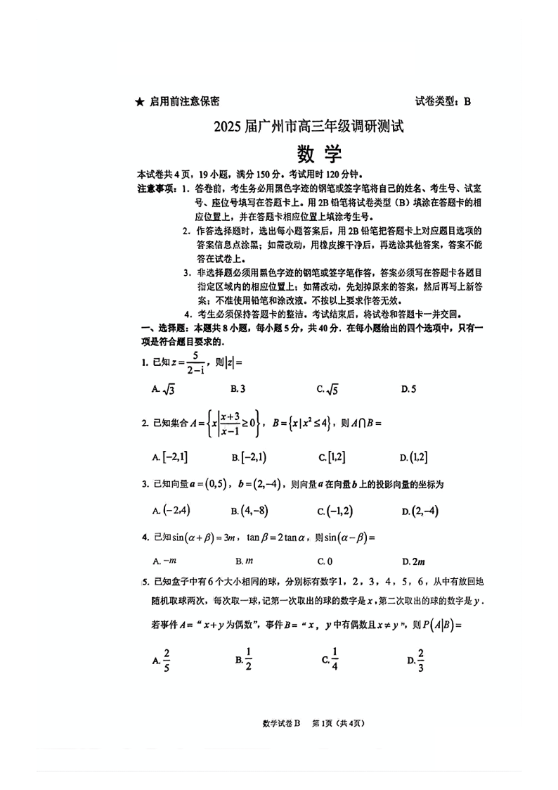 广东省2025届广州市高三年级调研测试(广州零模)数学.pdf