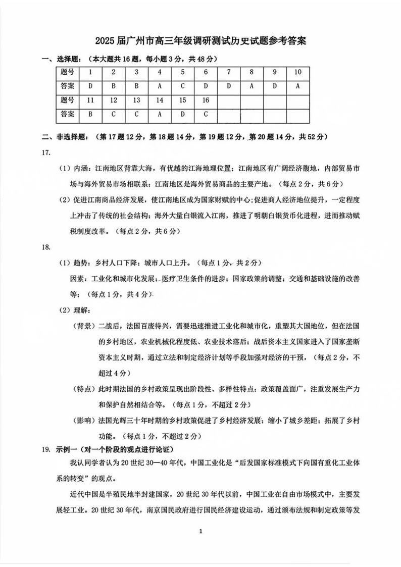 广东省2025届广州市高三年级调研测试(广州零模)历史答案.pdf