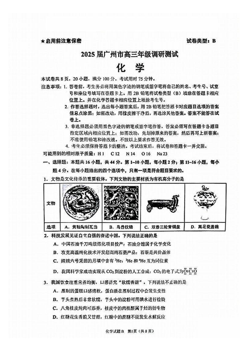 广东省2025届广州市高三年级调研测试(广州零模)化学.pdf