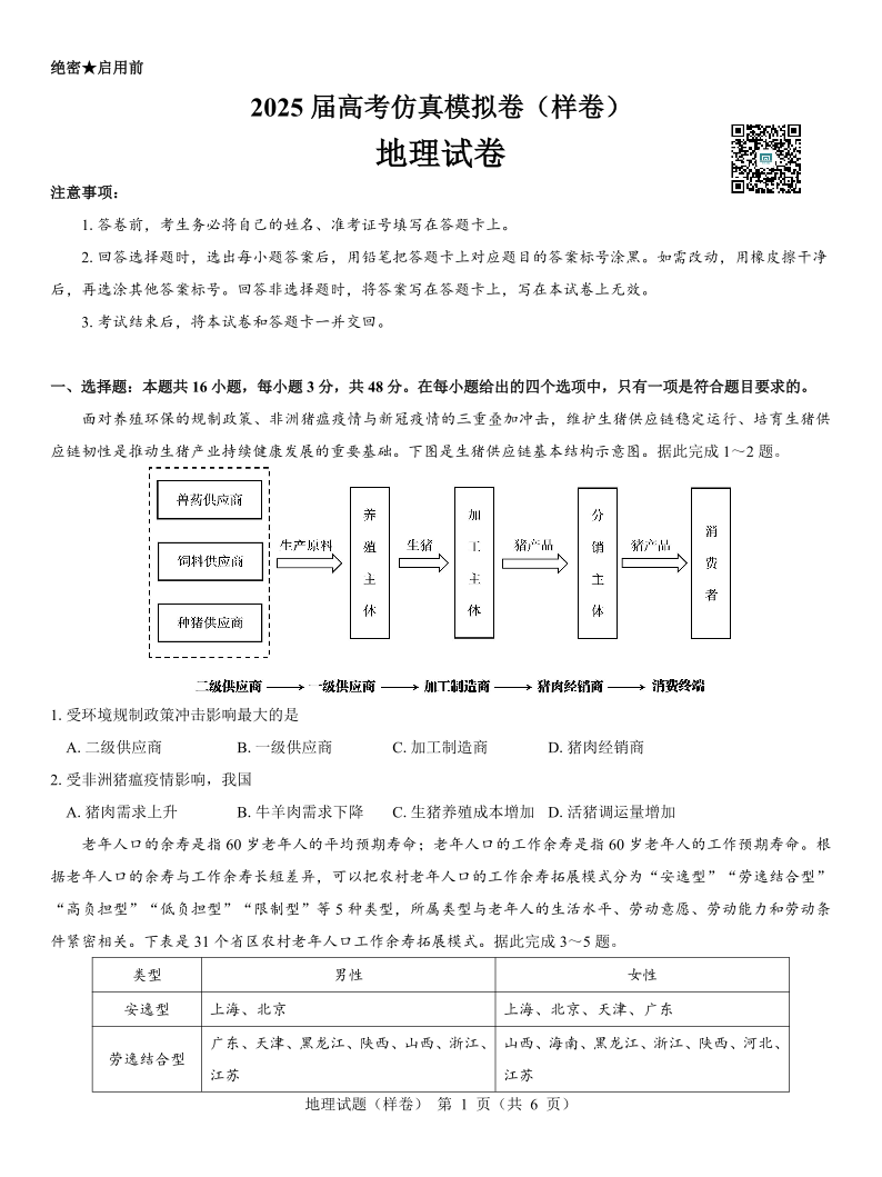 2025届高考仿真模拟卷 地理(样卷).pdf