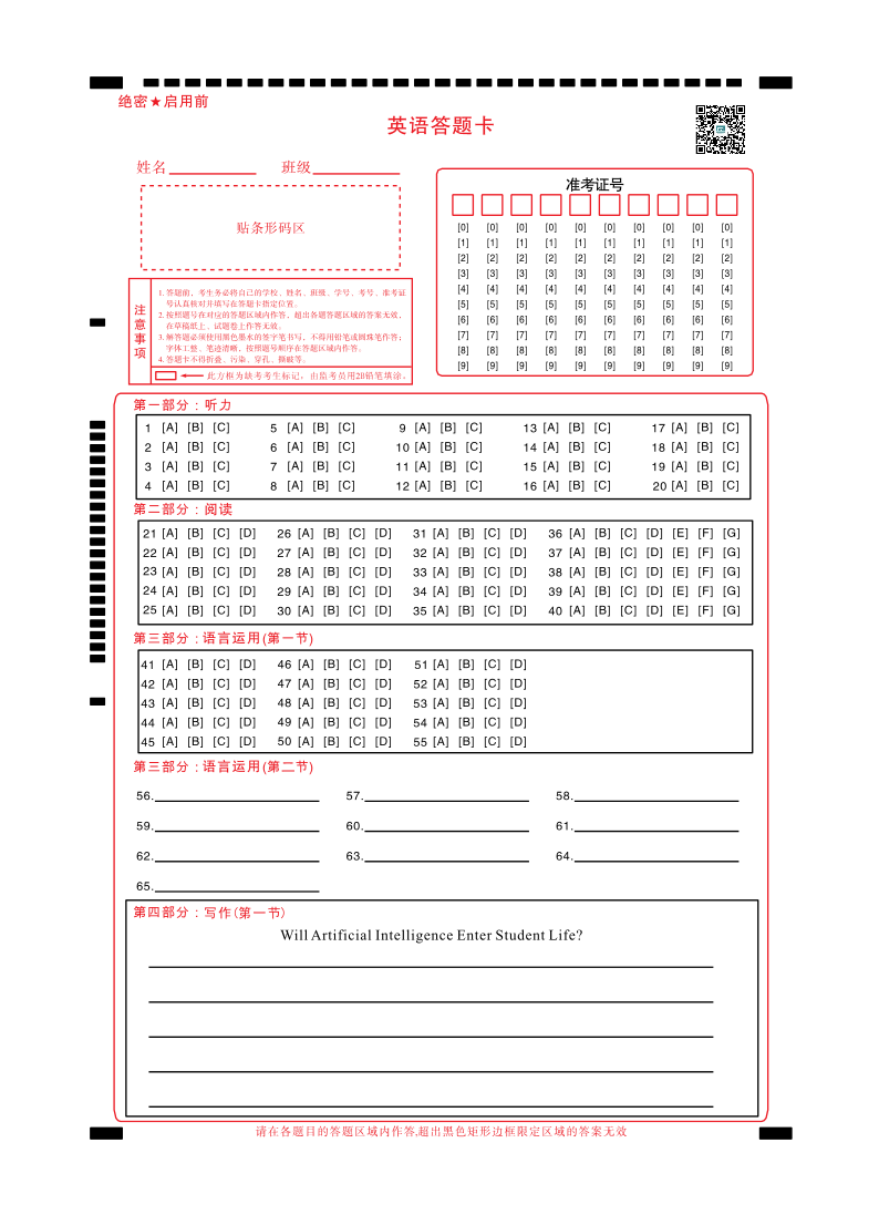 2025届高考仿真模拟卷 英语答题卡.pdf
