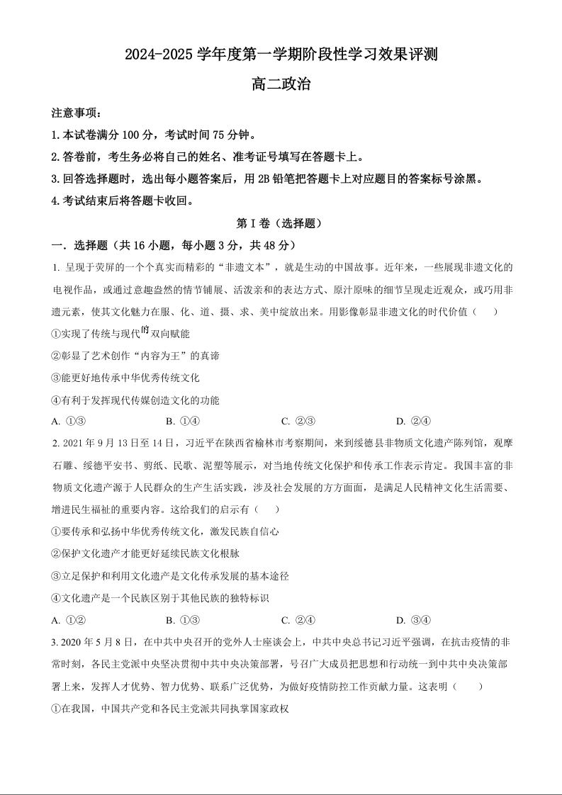 陕西省西安市部分学校2024-2025学年高二上学期12月联考 政治.docx