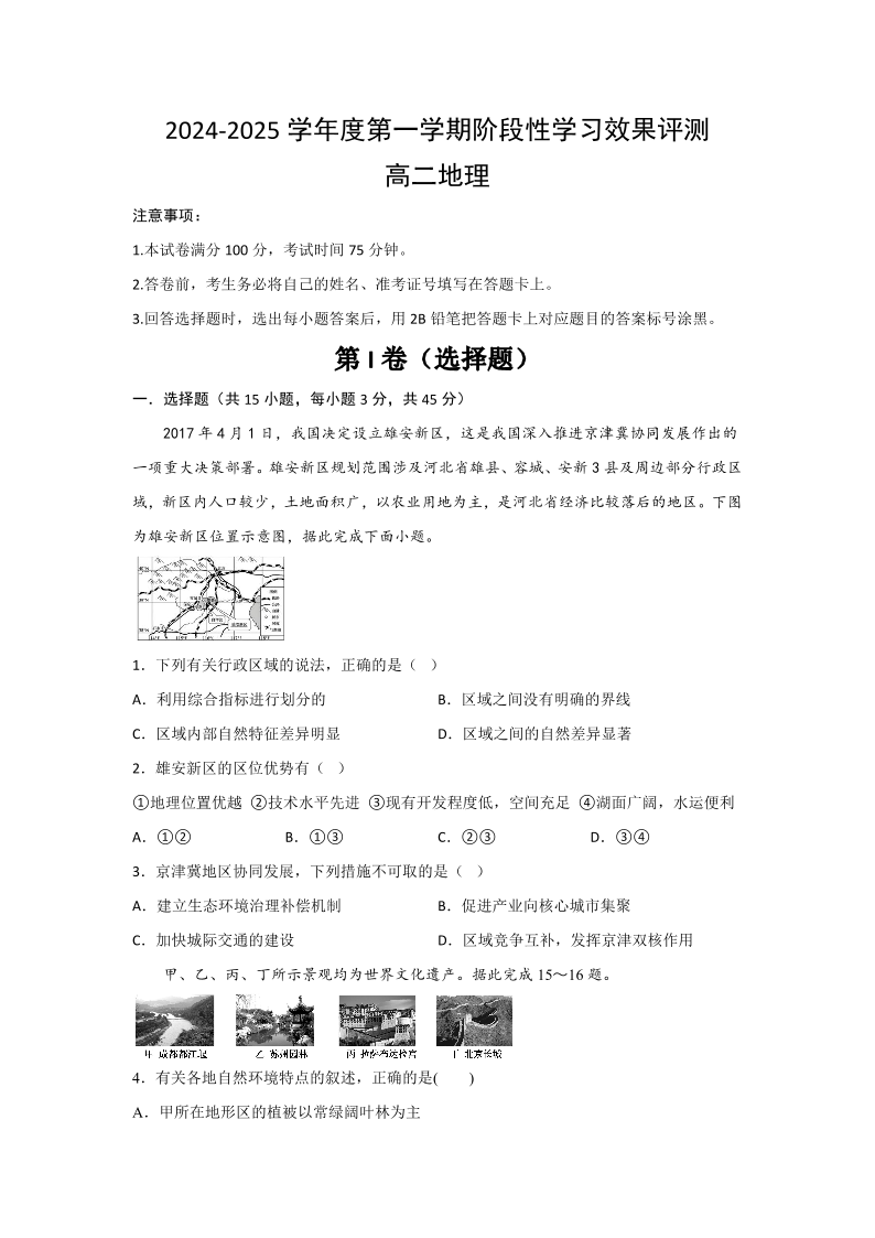 陕西省西安市部分学校2024-2025学年高二上学期12月联考 地理.pdf