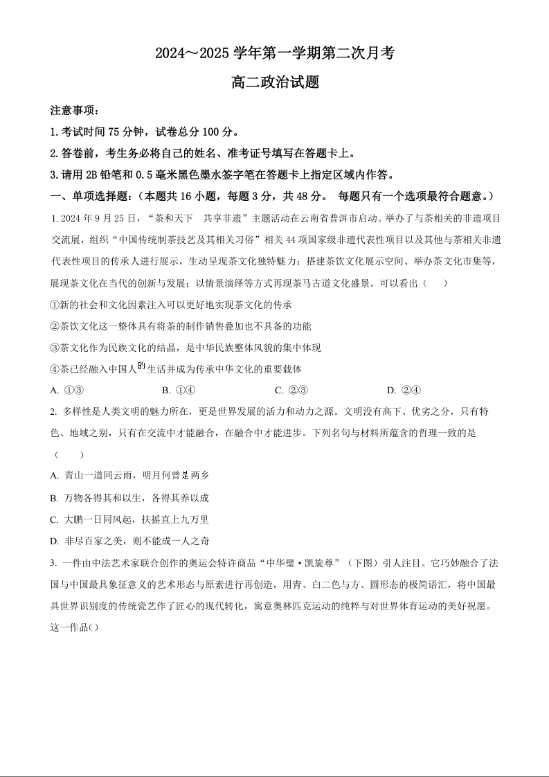 江苏省连云港市2024-2025学年高二上学期12月月考 政治.docx