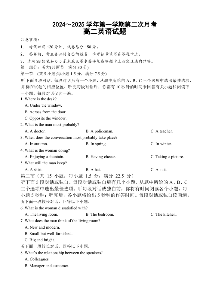江苏省连云港市2024-2025学年高二上学期12月月考 英语.docx