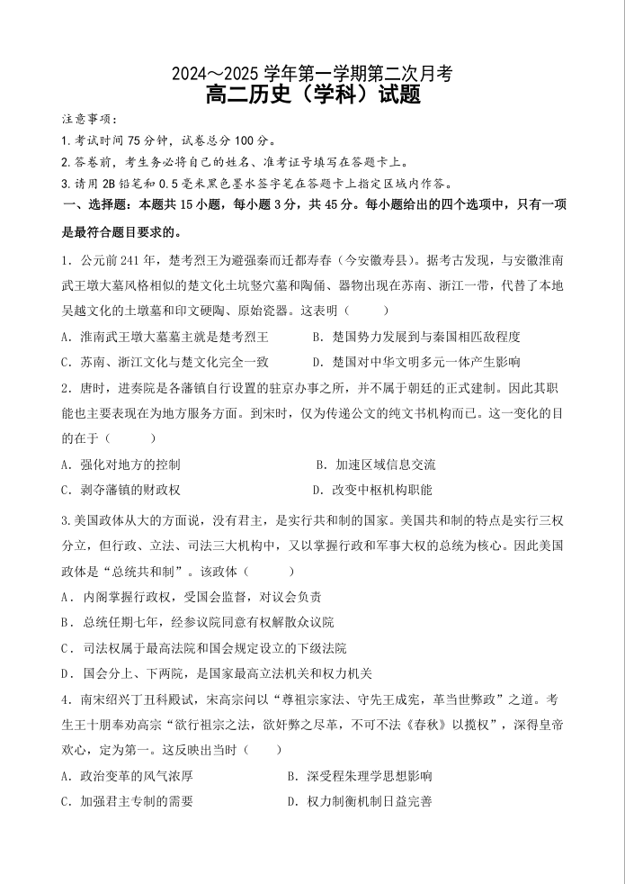 江苏省连云港市2024-2025学年高二上学期12月月考 历史.docx