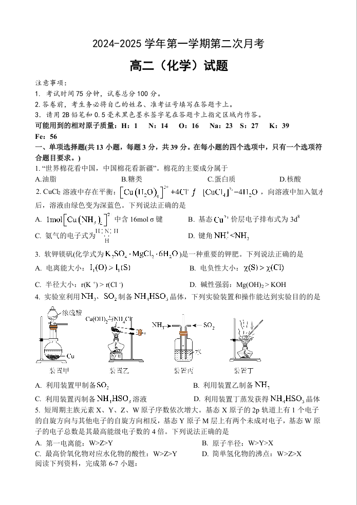 江苏省连云港市2024-2025学年高二上学期12月月考 化学.docx