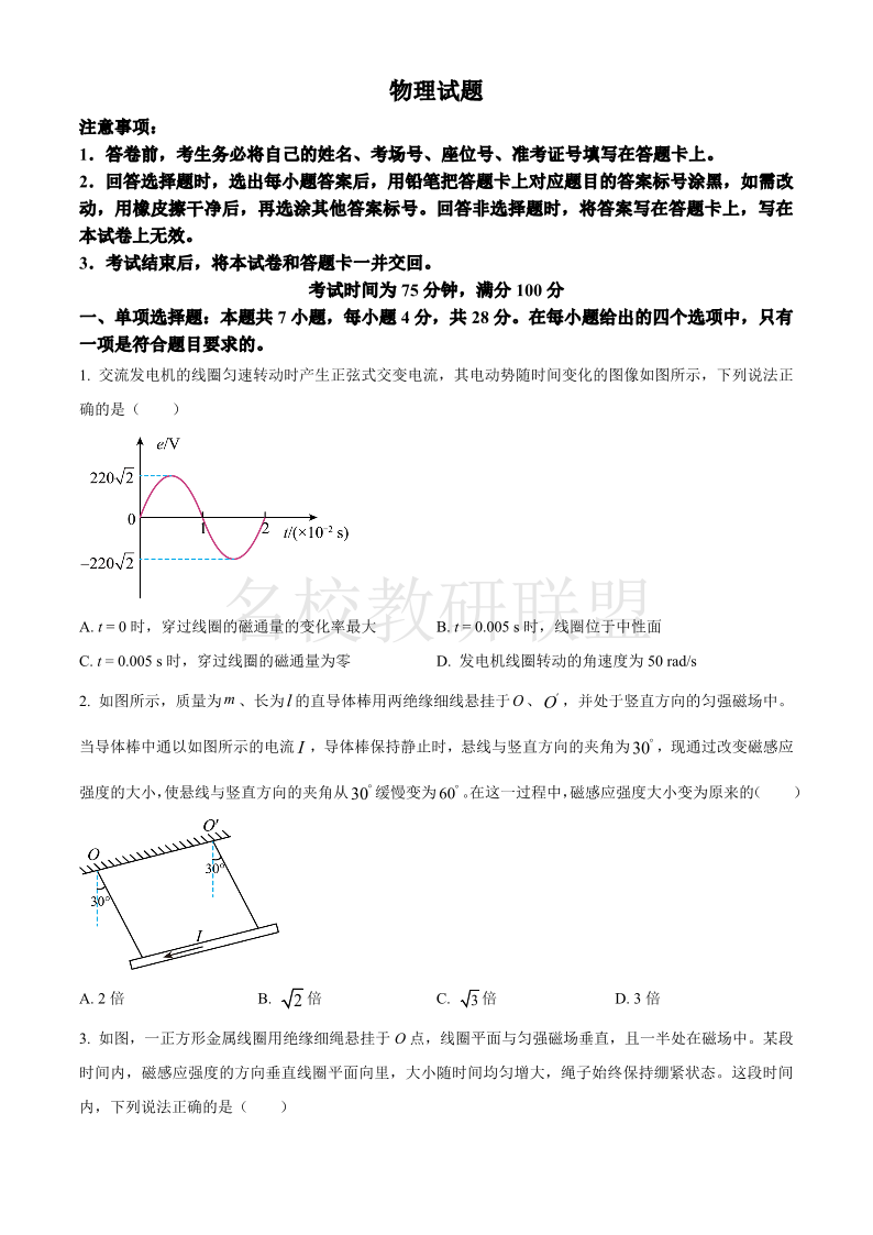 河南省百师联盟2024-2025学年高二上学期期中考试 物理.pdf