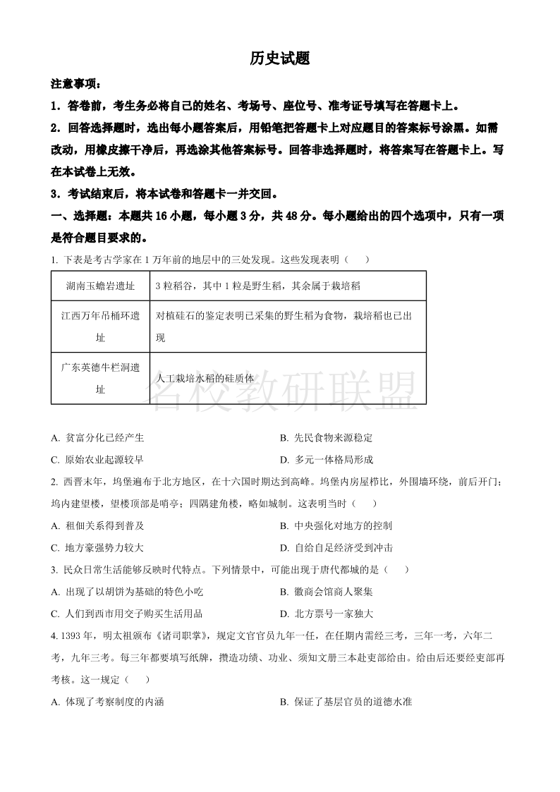 河南省百师联盟2024-2025学年高二上学期期中考试 历史.pdf
