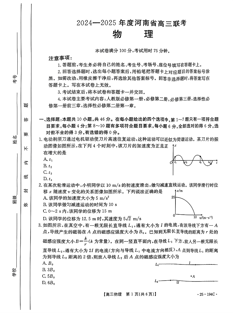 河南省2024-2025学年高三上学期联考 物理.pdf