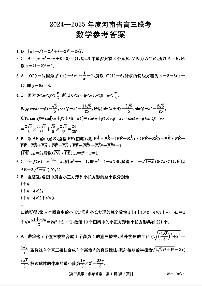 河南省2024-2025学年高三上学期联考 数学答案.pdf