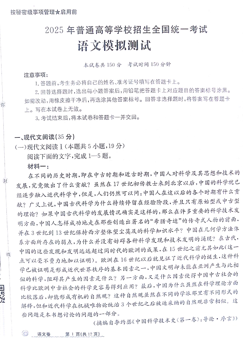 甘肃省白银市靖远县第一中学2025届高三12月模拟考 语文.pdf