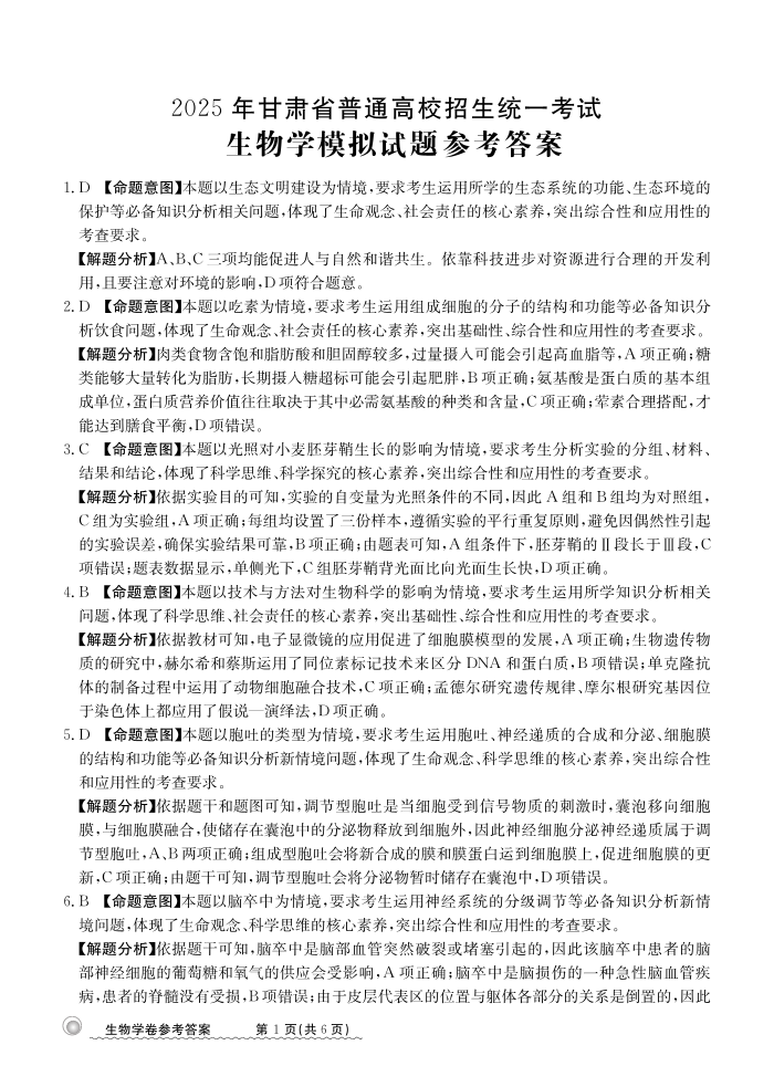 甘肃省白银市靖远县第一中学2025届高三12月模拟考 生物答案.pdf
