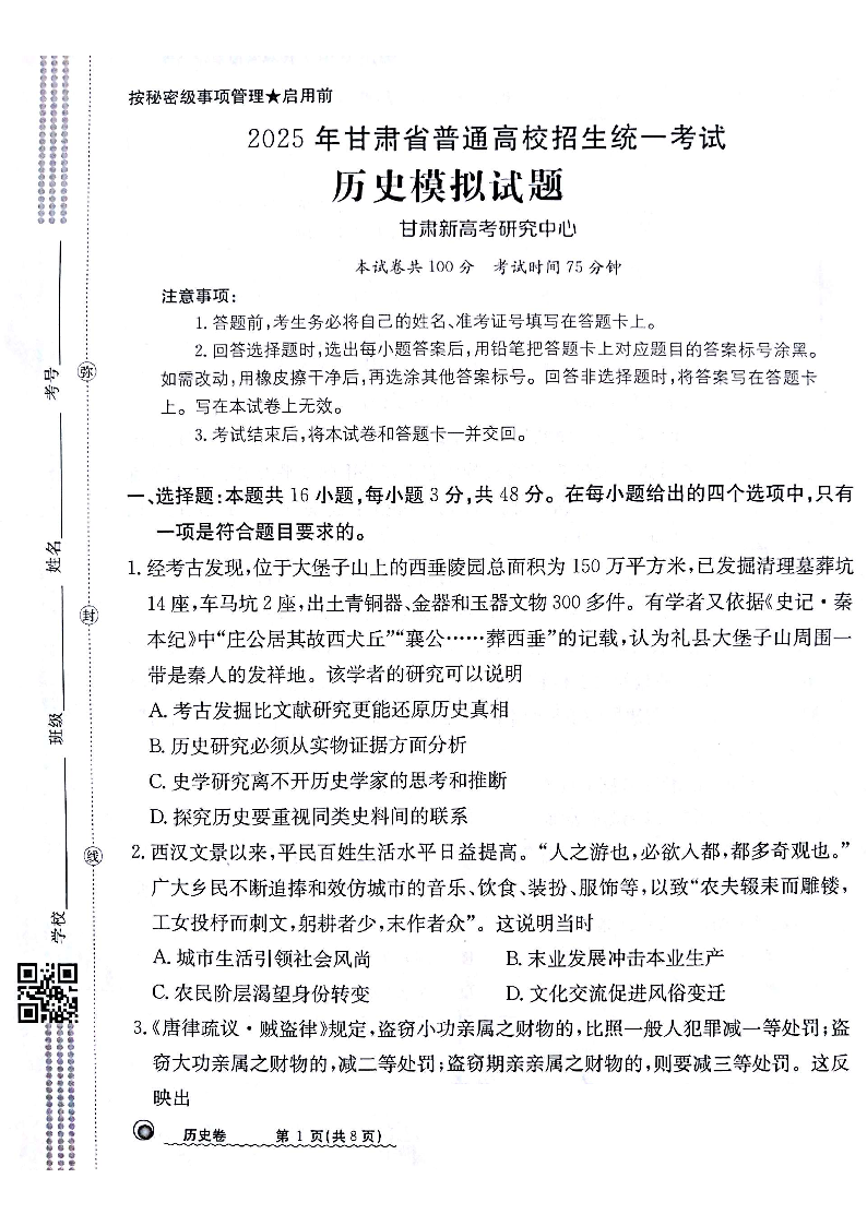 甘肃省白银市靖远县第一中学2025届高三12月模拟考 历史.pdf