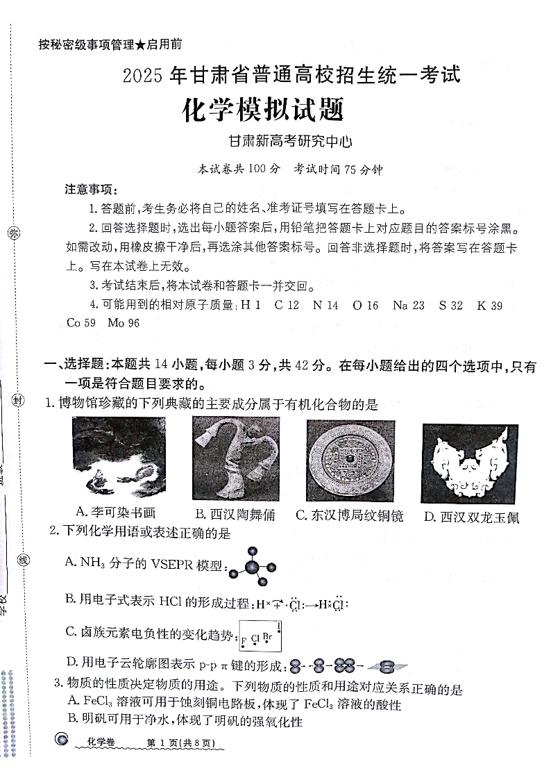 甘肃省白银市靖远县第一中学2025届高三12月模拟考 化学.pdf