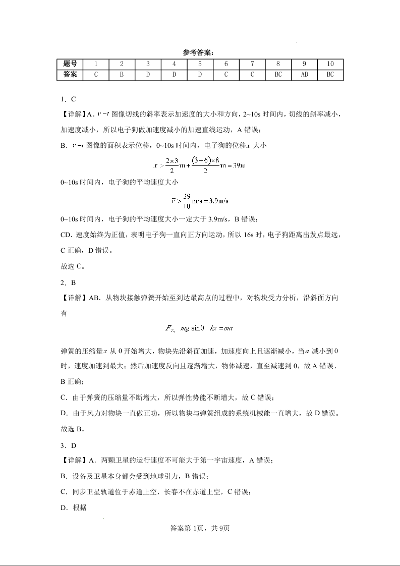 广东省清远市清新区2025届高三上学期12月期末四校联考 物理答案.docx