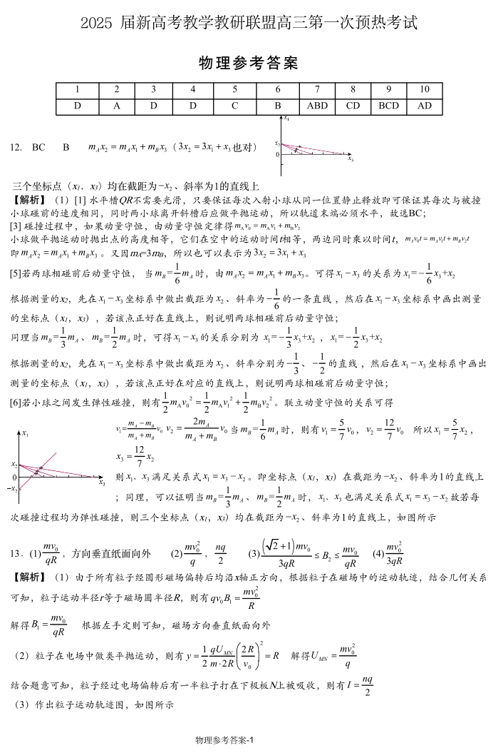 湖南省2025届新高考教学教研联盟高三第一次预热考试 物理参考答案.pdf