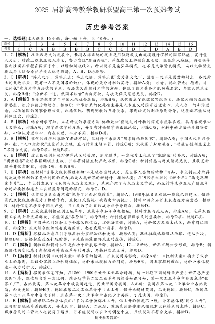 湖南省2025届新高考教学教研联盟高三第一次预热考试 历史参考答案.pdf