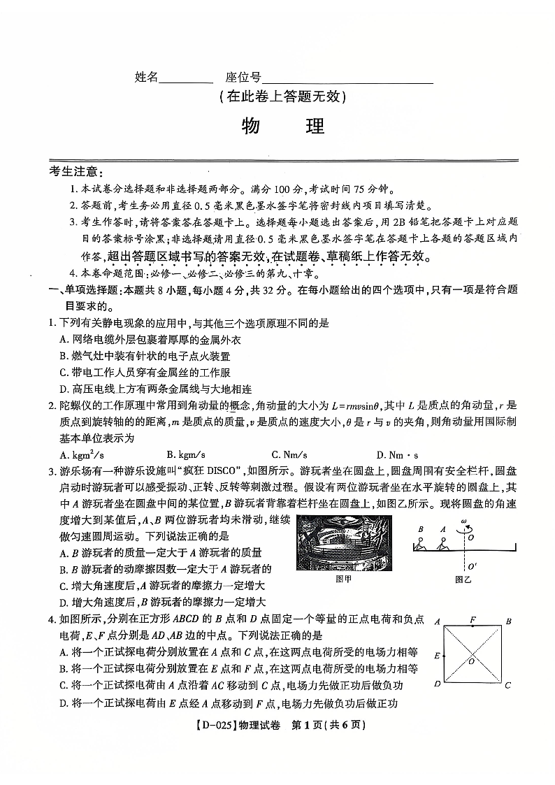 安徽省皖江名校2025届高三上学期12月质量检测 物理.pdf