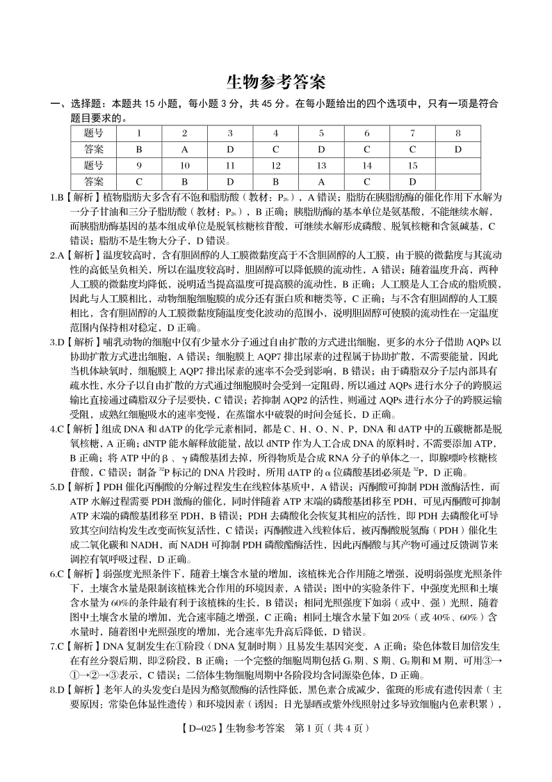 安徽省皖江名校2025届高三上学期12月质量检测 生物答案.pdf
