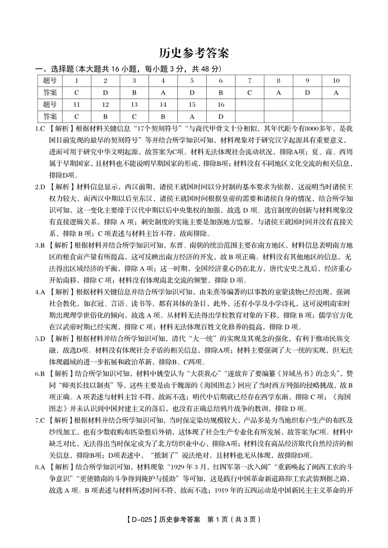 安徽省皖江名校2025届高三上学期12月质量检测 历史答案.pdf