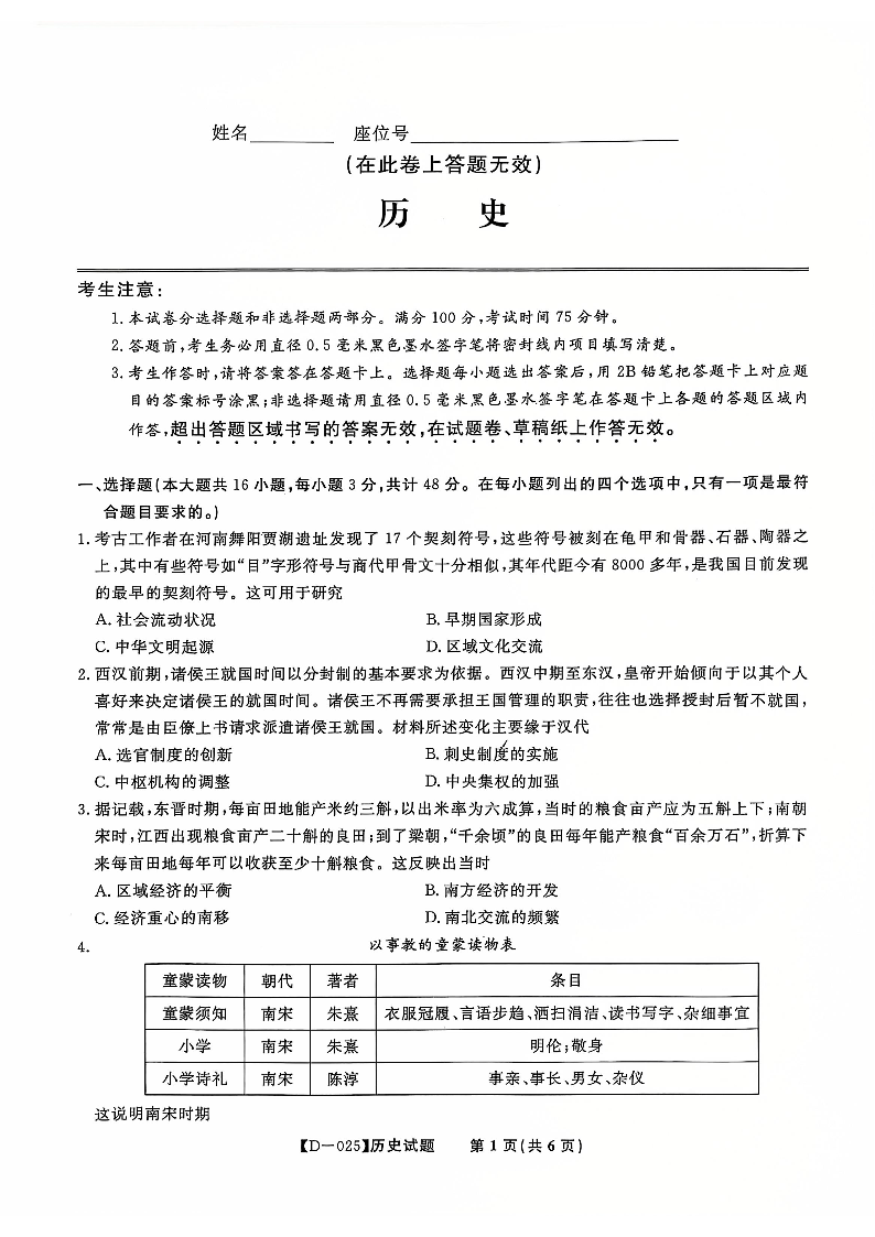 安徽省皖江名校2025届高三上学期12月质量检测 历史.pdf