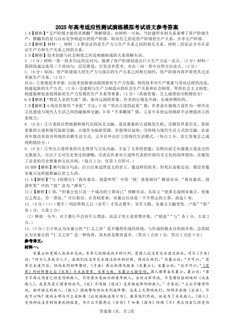 成都石室中学 2025 年高考适应性测试演练模拟考试 语文答案.pdf