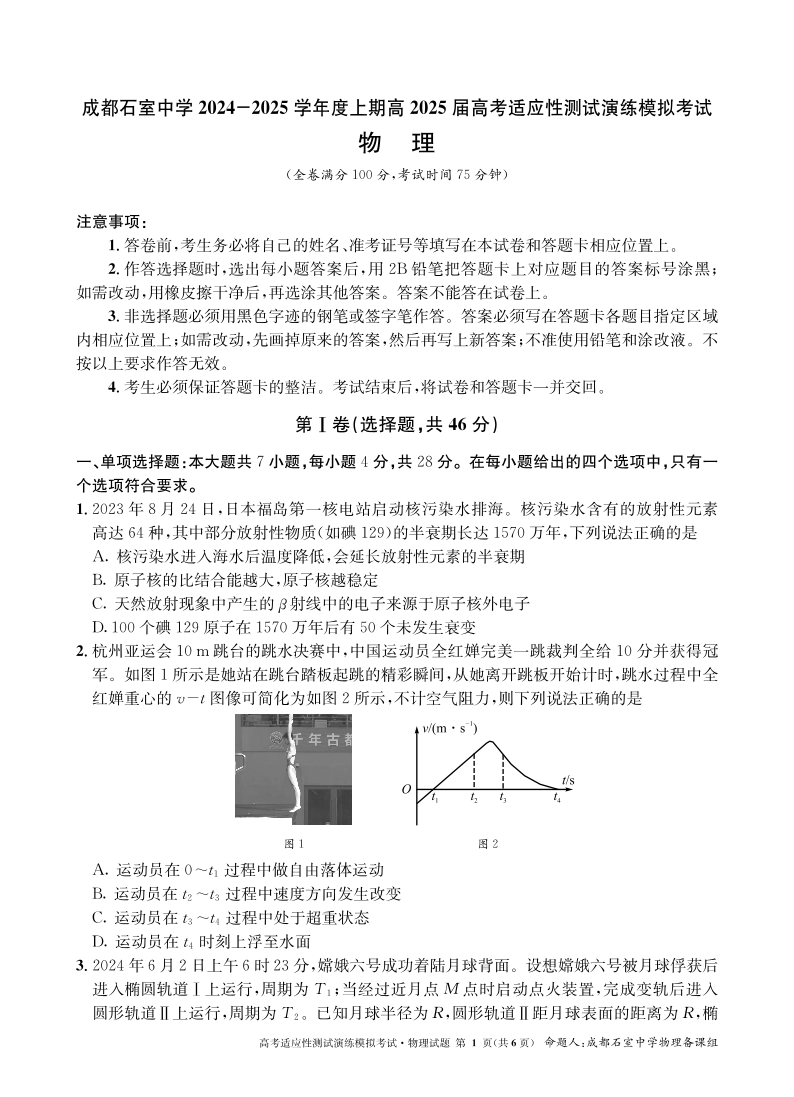 成都石室中学 2025 年高考适应性测试演练模拟考试 物理.pdf