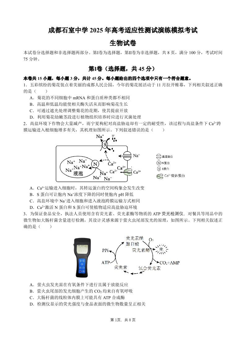 成都石室中学 2025 年高考适应性测试演练模拟考试 生物.pdf