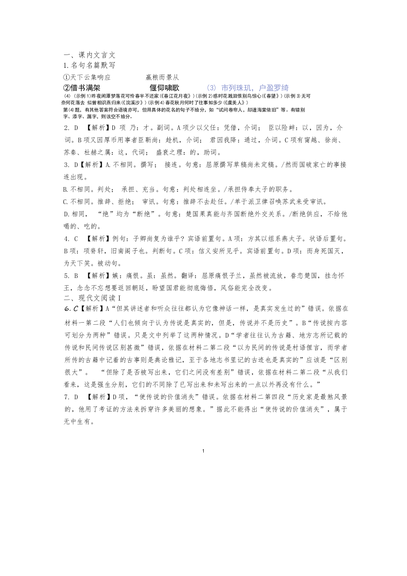 福建师范大学附属中学2024-2025学年度高考12月模拟考试 语文答案.docx