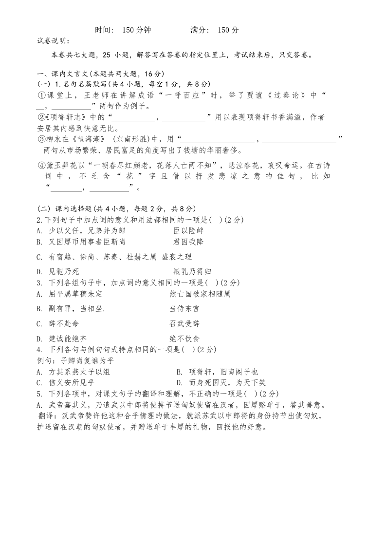 福建师范大学附属中学2024-2025学年度高考12月模拟考试 语文.docx